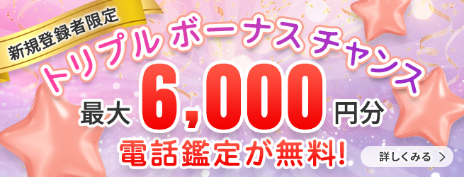 登録だけで3,000円分のポイントがもらえるほか、初回〜3回目までの鑑定で各2,000円分のポイントが還元される「トリプルボーナスチャンス」など、お得な特典が盛りだくさんです。